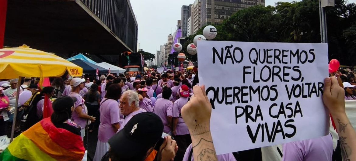 Neste ano, o número aterrorizante de feminicídios registrado no Brasil deu o tom. Nos discursos das lideranças vinham nomes de mulheres assassinadas, grande parte por ex-companheiros ou familiares.